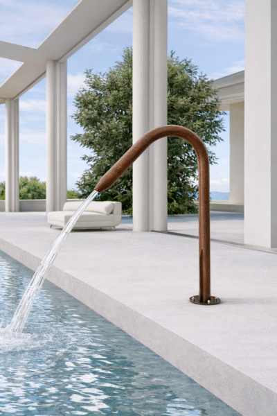 Cañón color corten en acero inoxidable AISI 316L (calidad marina). El color puede presentar variaciones entre piezas, ya que al ser pintadas a mano cada acabado es único.